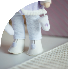Каждая деталь одежды и сама кукла сшиты без единого машинного шва.